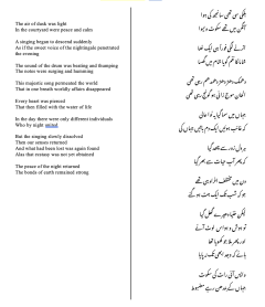 For my piece, I chose the medium of an Urdu poem for several reasons. First, I wanted to draw from my personal experience with qawwali singing in Rajasthan, India, and my interest in Urdu poetry, which is typically full of Islamic themes. I felt that the medium of poetry best captures the intangible experiential elements of listening to qawwali, especially because poetry enables the poet to play with structure, form, and grammar, leaning into rhythm and feeling and away from the rationality and order of a normal prose piece. Furthermore, by also reciting my poem, I hoped to harness the rich oral tradition of Islam, and particularly of the South Asian Islam I have more experience with. In addition, when Adnan led our section in some devotional singing, it reinforced for me the value of hearing and performing to generate a more intense, fulfilling experience.