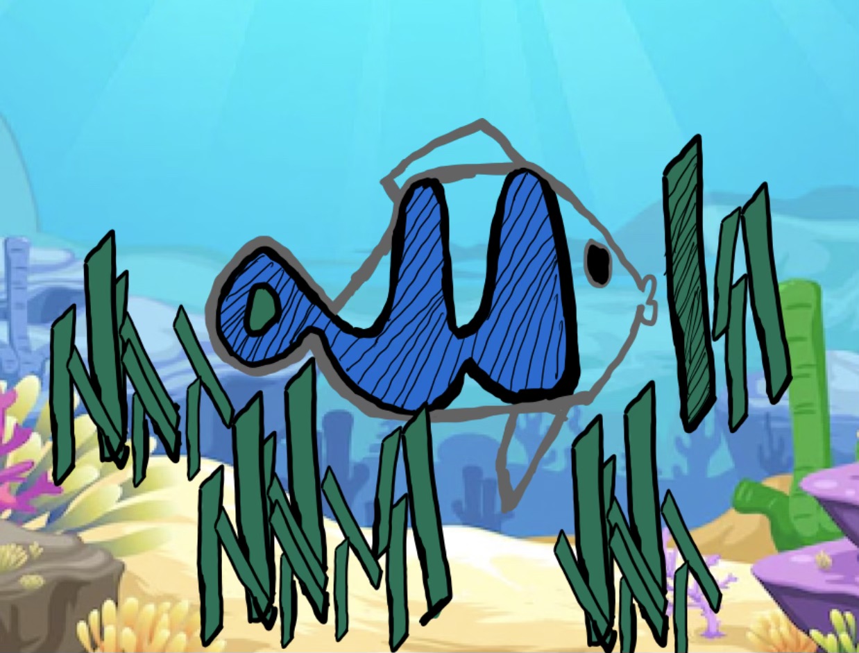 The word Allah is an important symbol of Islam, representing the name of the one true God. I wanted to incorporate this word in my calligram in a unique and creative way. I used Arabic calligraphy to write the word Allah and placed it within the body of the fish. The alif is found within the seaweed, and the rest of the word can be found within the body of the fish. This not only creates a striking visual image but also adds depth and meaning to the calligram, reminding viewers that Allah is present not only in the natural world around us but also within ourselves.