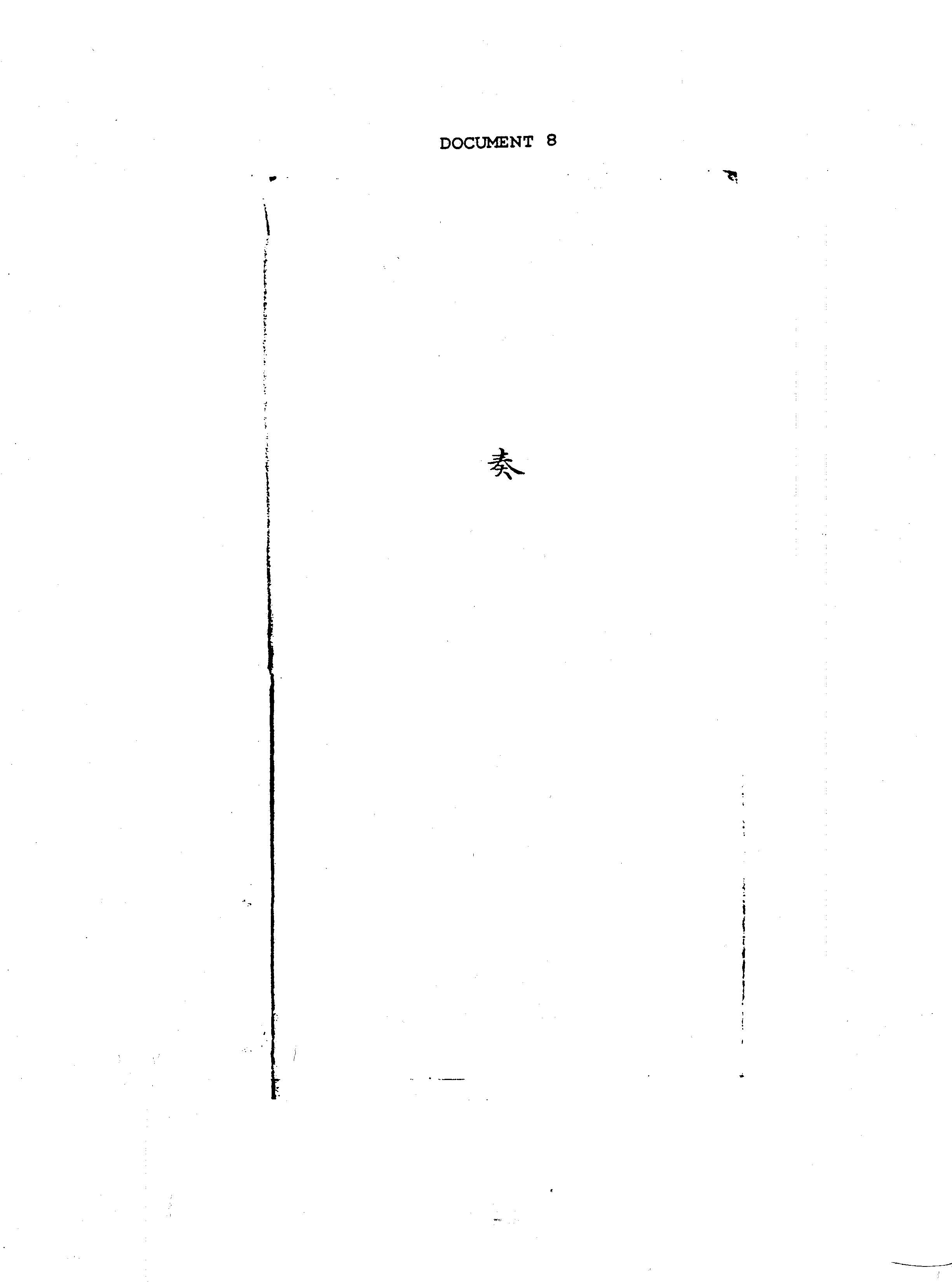 奏 - zou - a palace memorial. This ideograph customarily appears by itself, on the front fold of the memorial; note the absence of the memorialist's seal of office, by comparison with the Documents 1 and 2. The palace memorial was, formally speaking, a personal communication: the form emphasizes the official's relationship to the emperor as an individual retainer rather than as the holder of a particular office (though the two functions are obviously not completely separate).