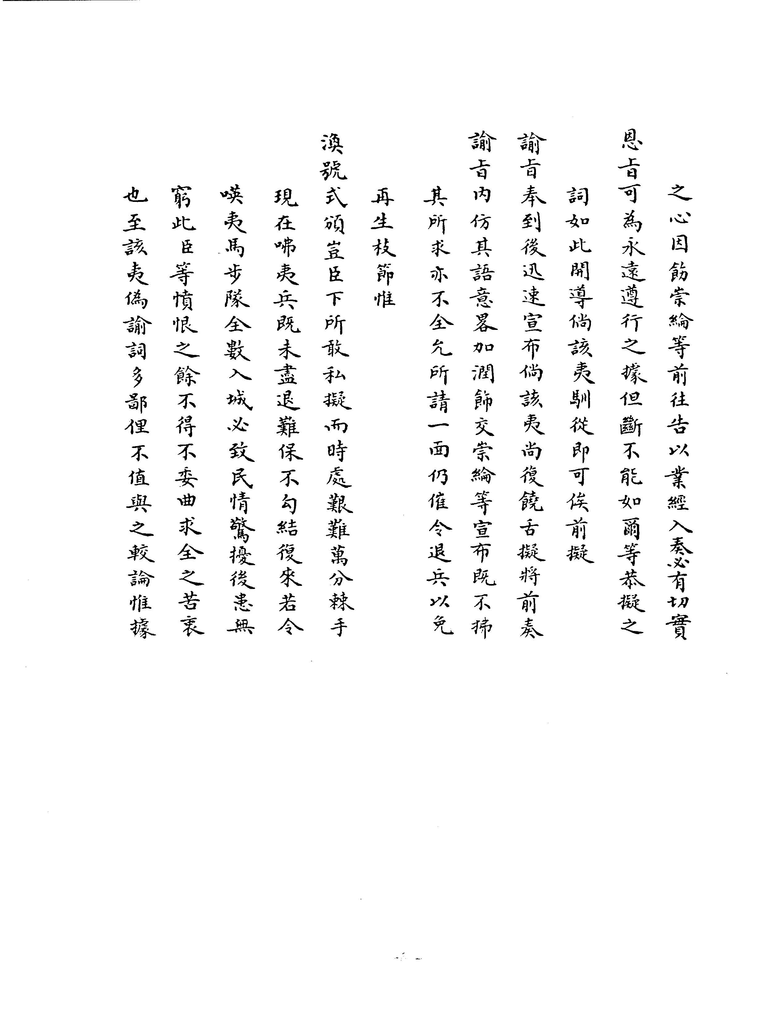 2) The introductory statement of the subject, or the reason for memorializing, along with the means of transmission (stated in this case because the memorial was sent by military post at a specified speed, rather than by a personal courier). This introductory statement is enclosed by the phrases 奏為…事 (lines 2-4)