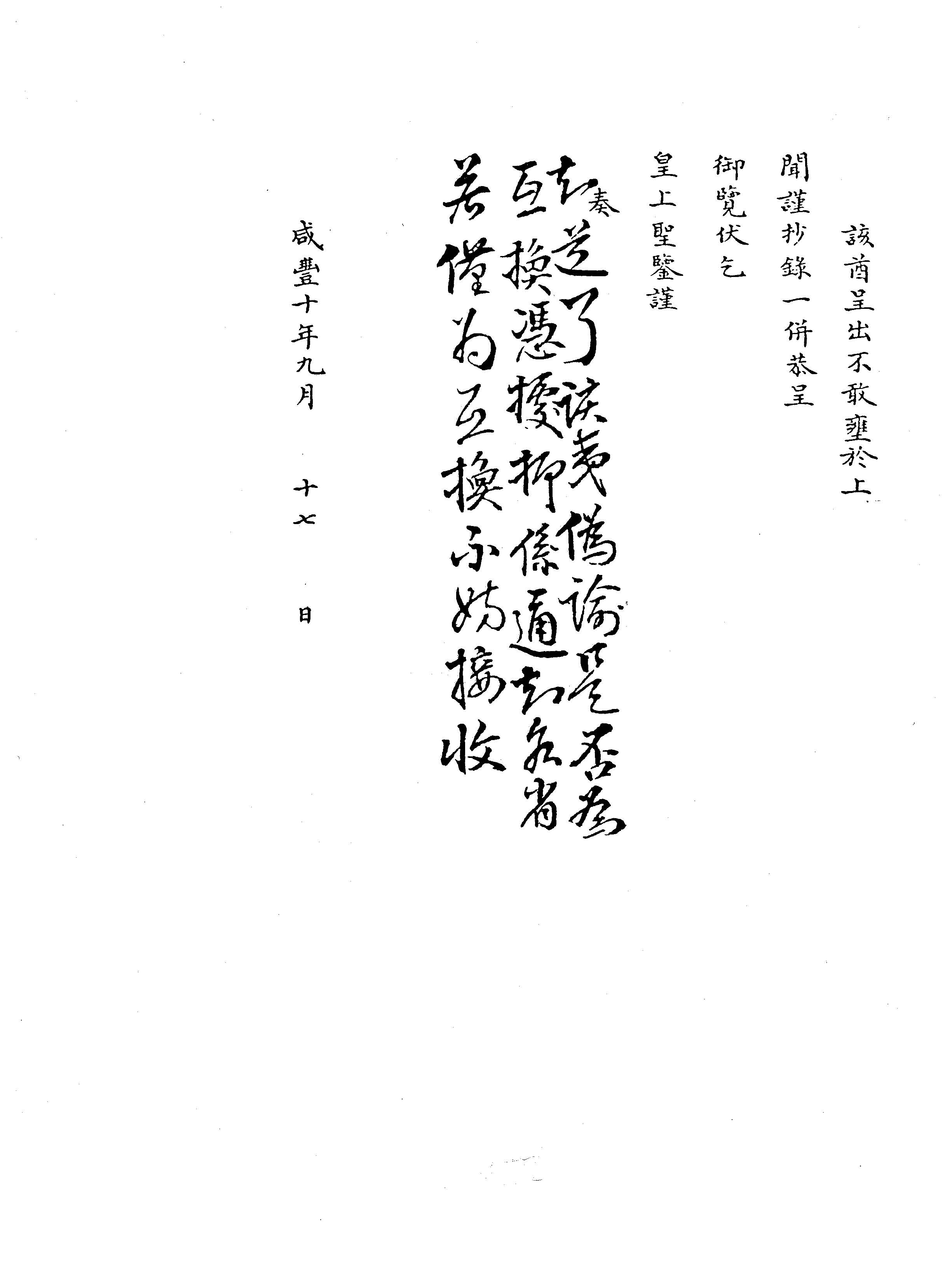 Note: A copy of this memorial was included in the documentary history Chouban yiwu shimo (on this source, see "Foreign Affairs" under Reference Guides. Compare the present document with the version there, juan 67:44)